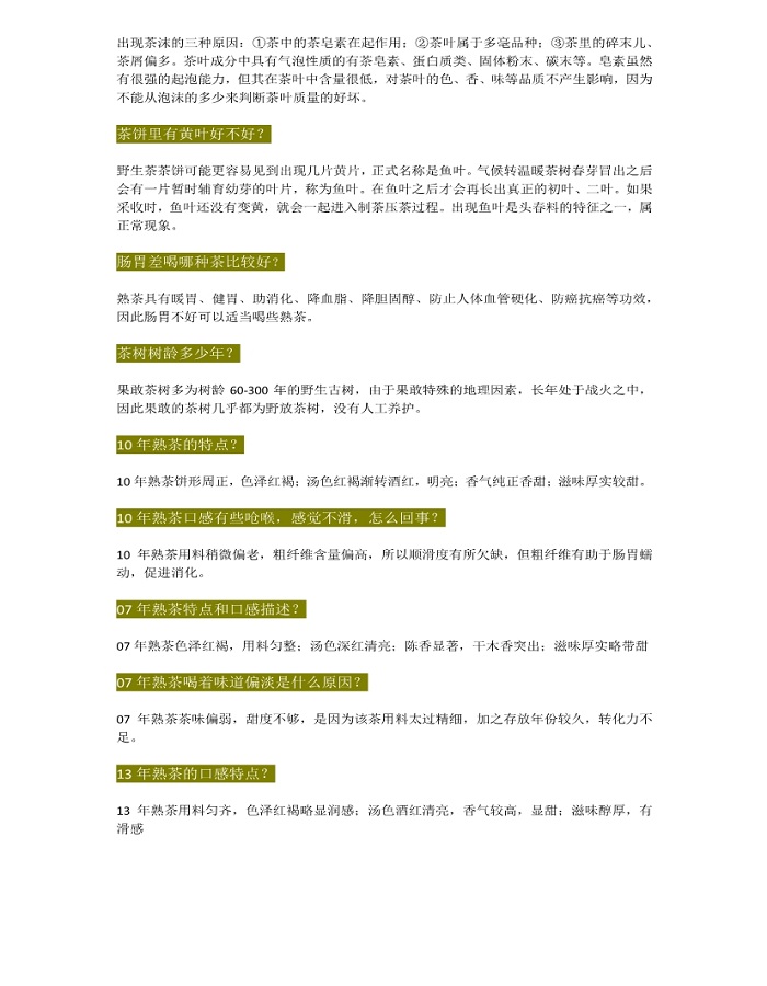茶葉常見(jiàn)問(wèn)題解答